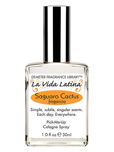 La Vida Latina Saguaro Cactus by Demeter Fragrance is a fragrance for women and men. La Vida Latina Saguaro Cactus was launched in 2009. Demeter Fragrance has presented a Latin collection which is named La Vida Latina and counts two cheerful and dashing fragrances. Saguaro Cactus and Sweet Cilantro represent passionate Latin life presented in characteristic Demeter way. Fragrance Saguaro Cactus celebrates life with its green and enchanting aromas of the desert stretching on the southwest of the USA and Mexico. The fragrance is available as 1/2 oz purse spray, 1/2 oz cologne splash, 1ozl cologne spray, 4 oz cologne spray, 4 oz atmosphere spray, 4 oz calming body lotion, 4 oz bath and 3 oz tendre bath oils.
