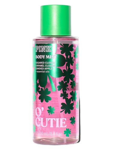 O'Cutie Mist by Victoria's Secret is a Floral Fruity Gourmand fragrance for women and men. This is a new fragrance. O'Cutie Mist was launched in 2026. O'Cutie is a fruity gourmand body mist featuring notes of sugared clover, caramel clouds, and candied apple. The fragrance presents a fresh apple accord with soft, airy caramel. The apple note is subtle and not overly ripe, balanced by light candy sweetness.